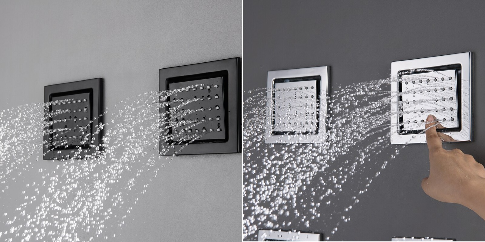 The most distinguished part of the massage shower system is the body jets which are made of many nozzles the body jets are mounted on the shower wall that spray water onto the user's body from various angles.